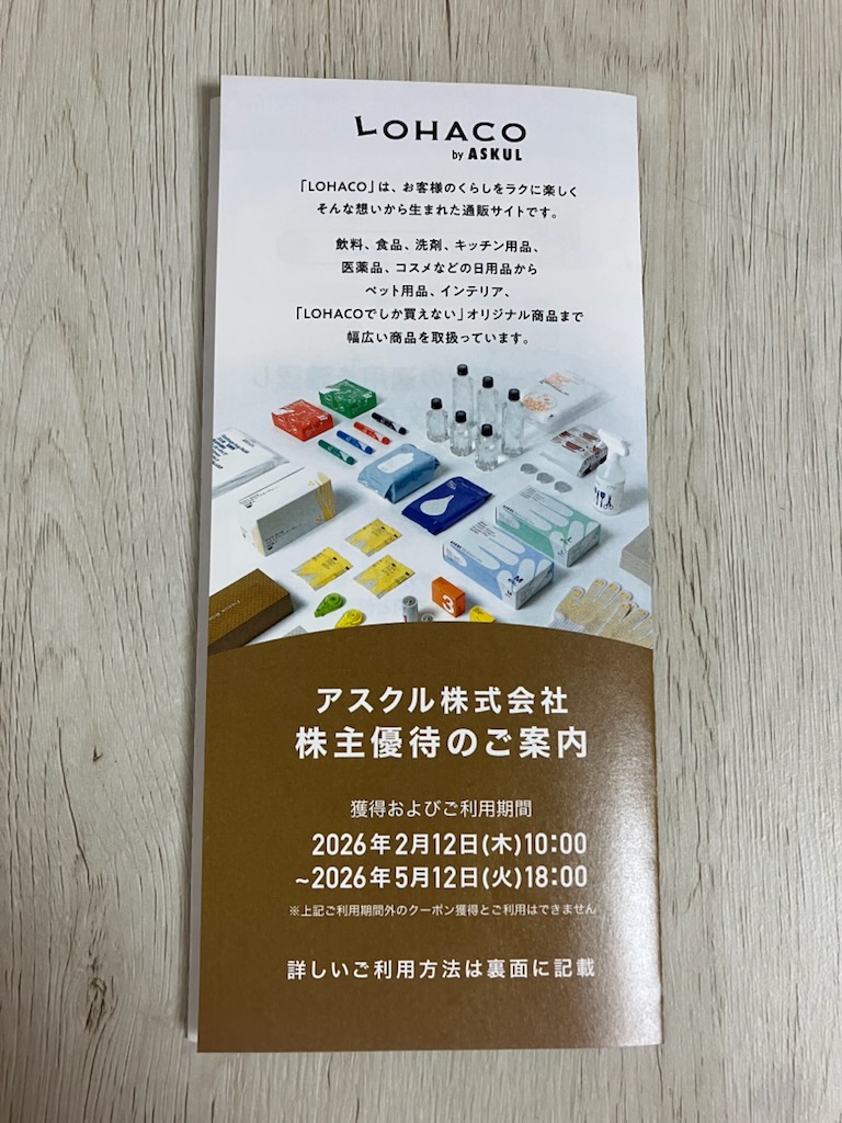 あと、このクーポン利用期間短めです。(2月12日から5月12日まで)届き次第早めの使用がお勧めです。(いつも株主優待の期限ギリギリに申し込む私・・)