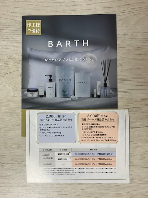 株主優待を頂くのに最低でも現在では50万オーバーの投資が必要ではありますが、年2回使える日用品セットをいただけるのでお得だと思ってガッチリ保有しています。