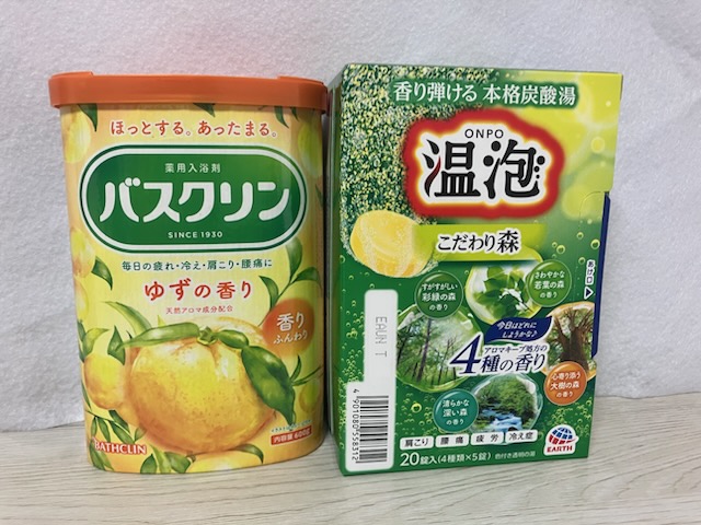 今回はこれからの季節にぴったりなゆずの香りのバスクリンと、森の香りの温泡の2個頂きました。これだけあれば、入浴剤結構長持ちします。ありがたい!
