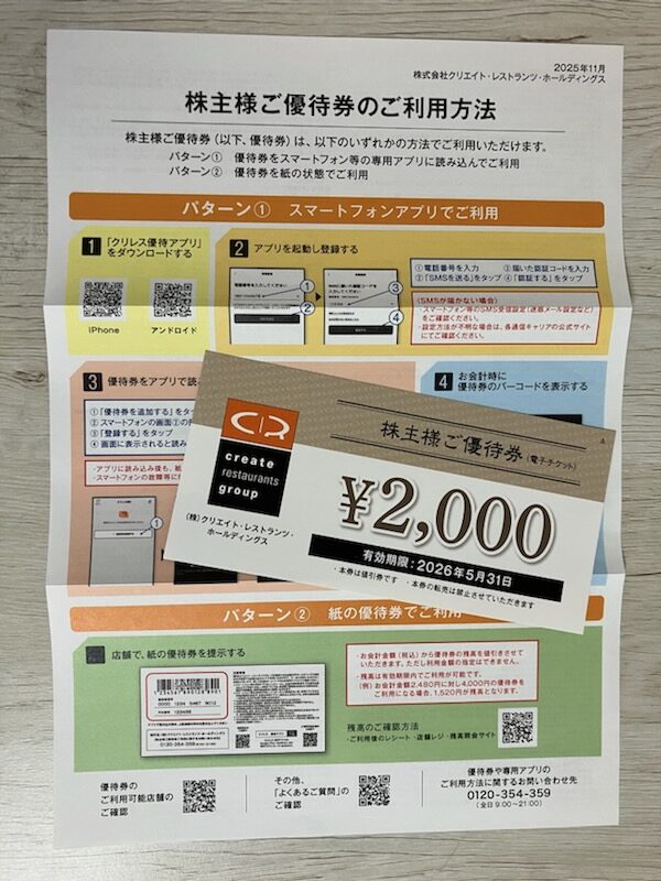 もちろん私も保有しています。使える店舗が多すぎてどこで使おうか悩む優待です。
