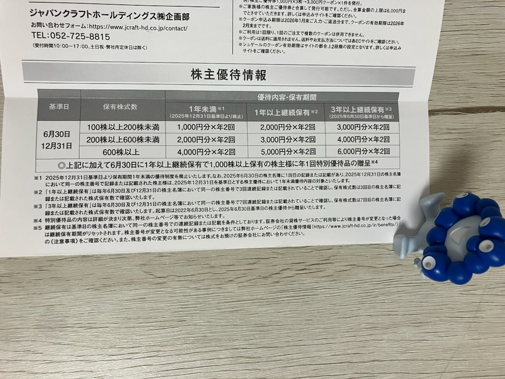 ジャパンクラフトホールディングス株主優待2025年6月分