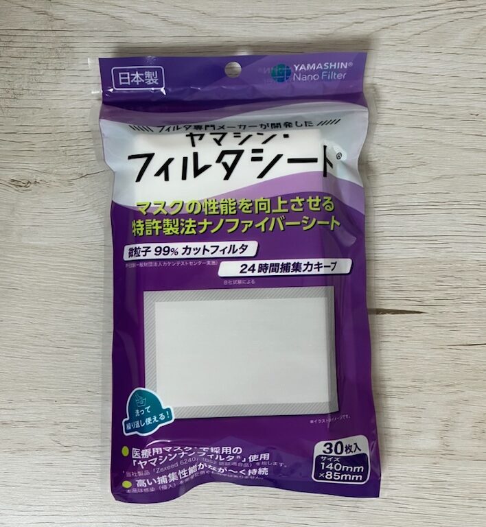 究極のヤマシン・フィルタシート30枚入り1パックです。こちらは、マスクにつけて使用するシート。