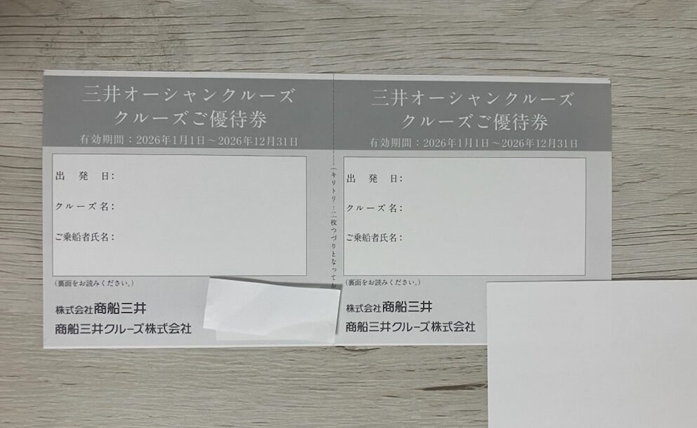三井オーシャンクルーズ優待券が2枚頂けました。